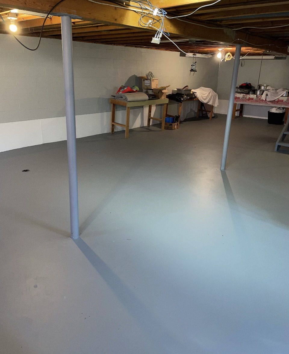 After sealing all cracks in the walls and floor, we repaint the entire floor to restore a clean, fresh basement area.