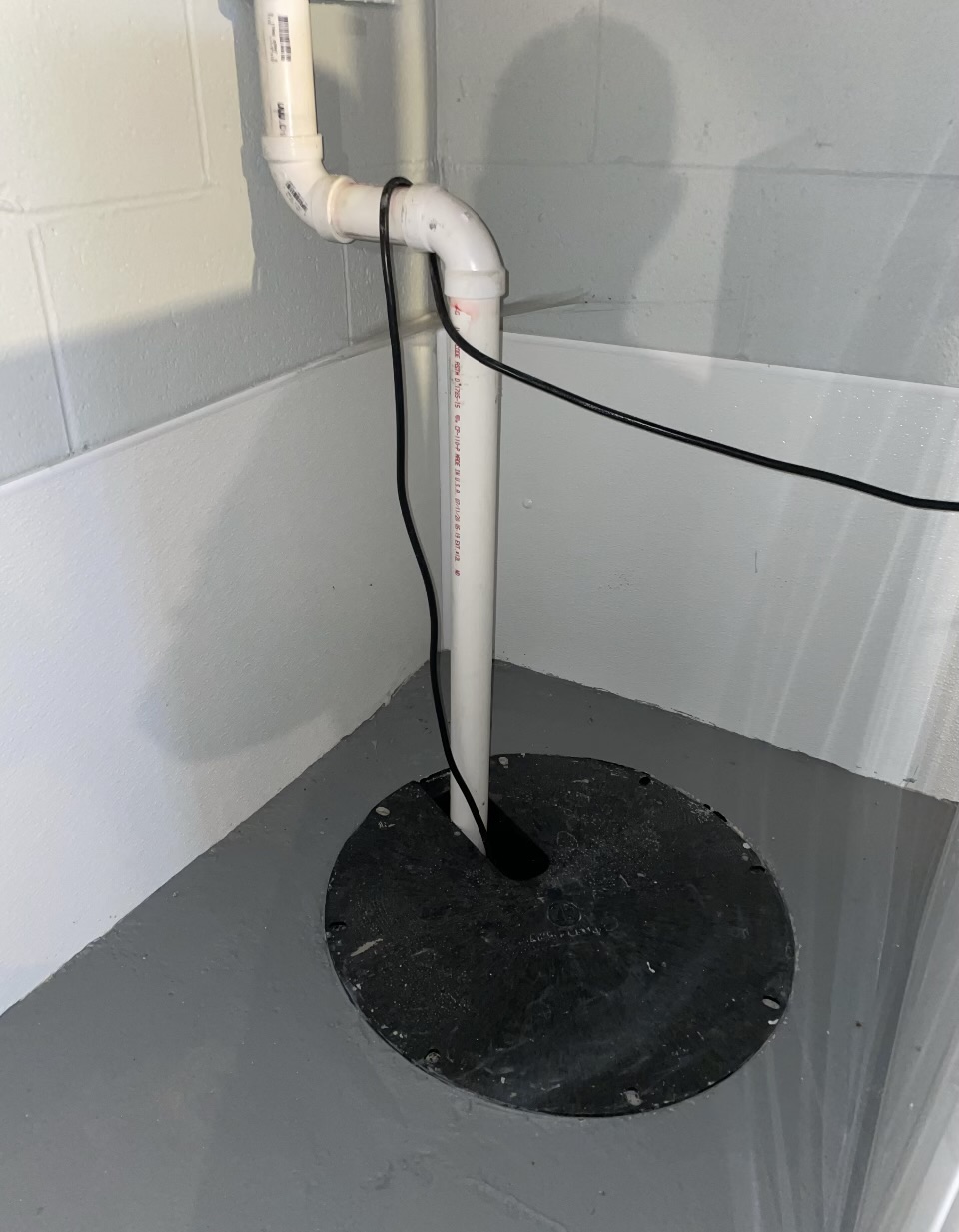 We then introduce a sump pump and battery backup pump and direct our PVC pipe into the sump pump to remove all water from your walls and floor and pump away from the house.